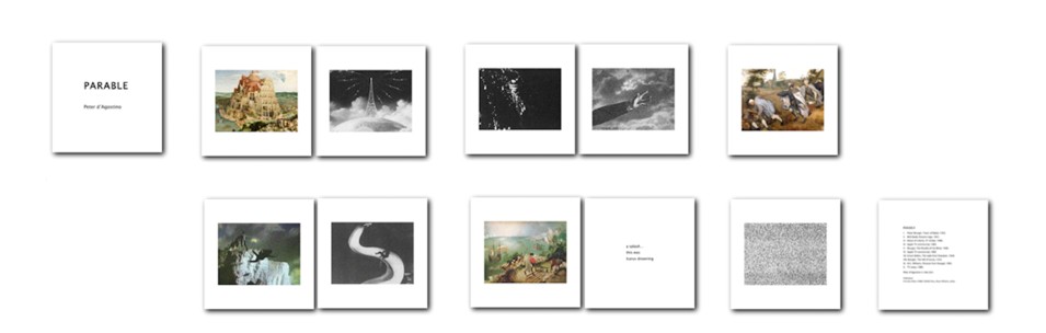 I. Title II. Pieter Breugel, Tower of Babel, 1563. III. RKO Radio Pictures logo, 1941. IV. Statue of Liberty, 4th of July, 1986. V. Apple TV commercial, 1985. VI. Breugel, The Parable of the Blind, 1568. VII. Apple TV commercial, 1985. VIII. Orson Welles, The Lady from Shanghai, 1948. IX. Breugel, Landscape with the Fall of Icarus, 1555. X. W.C. Williams, Pictures from Breugel, 1962. XI. TV snow, 1986. XII. Sources